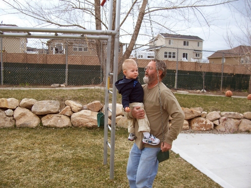 Nathan on the swingset with his Grandpa.